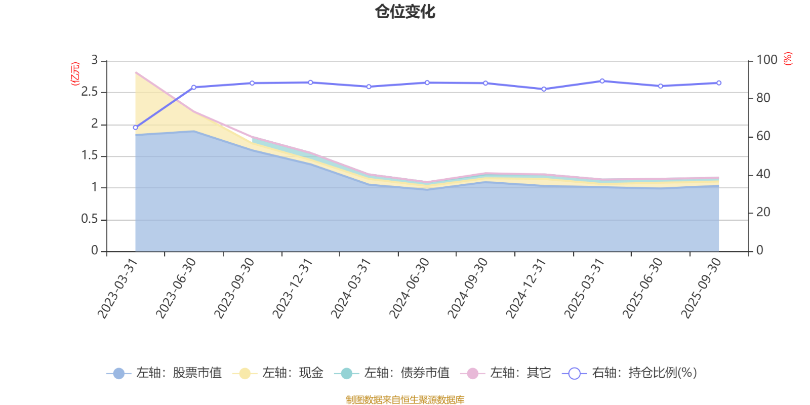 据定期报告数据统计,成立以来平均股票仓位为85.52%,同类平均为83.73%。2025年一季度末基金达到89.39%的最高仓位,2023年一季度末最低,为64.98%。