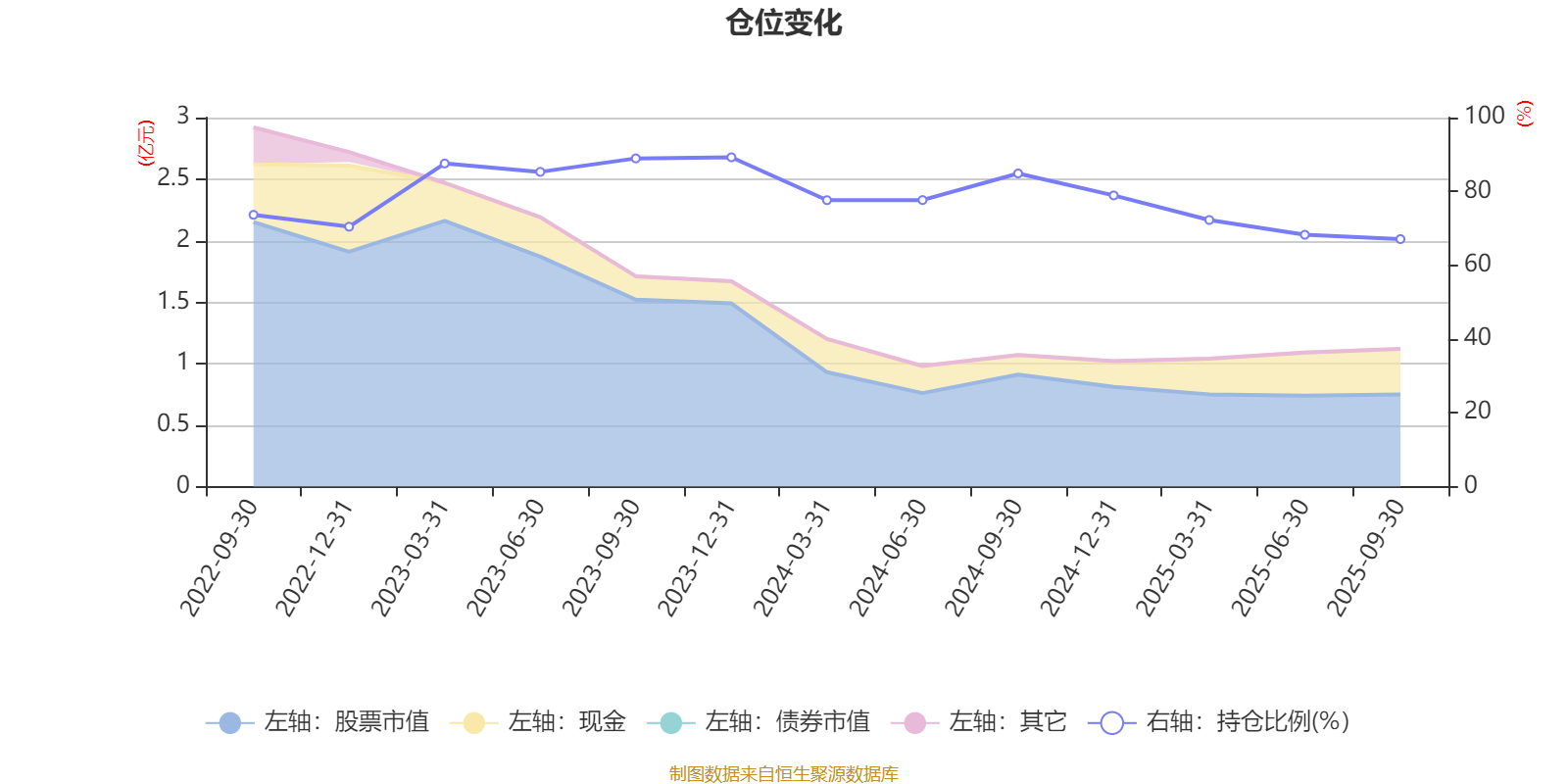 据定期报告数据统计,近三年平均股票仓位为79.01%,同类平均为83.73%。2023年末基金达到89.24%的最高仓位,2025年三季度末最低,为67.07%。