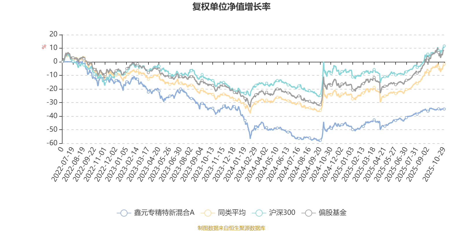 截至10月29日,鑫元专精特新混合A近三个月复权单位净值增长率为4.77%,位于同类可比基金576/689;近半年复权单位净值增长率为21.77%,位于同类可比基金461/688;近一年复权单位净值增长率为26.27%,位于同类可比基金360/657;近三年复权单位净值增长率为-22.63%,位于同类可比基金348/364。