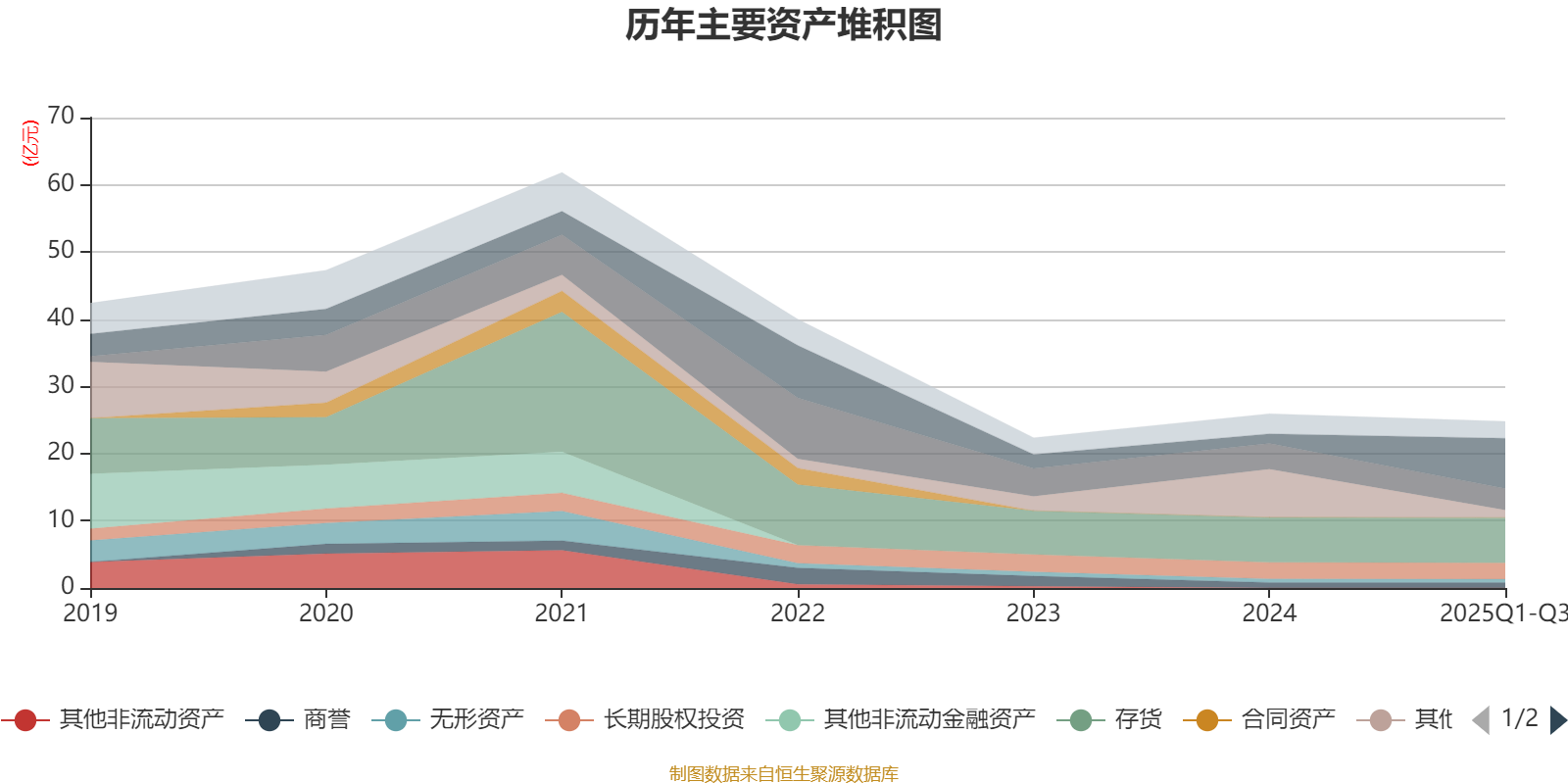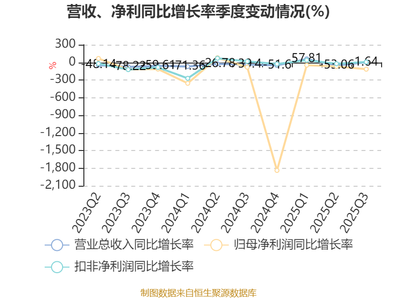 资产重大变化方面,截至2025年三季度末,公司货币资金较上年末增加421.4%,占公司总资产比重上升24.64个百分点;其他应收款(含利息和股利)较上年末减少84.39%,占公司总资产比重下降23.08个百分点;交易性金融资产合计较上年末减少100%,占公司总资产比重下降2.01个百分点;应收票据及应收账款较上年末减少16.26%,占公司总资产比重下降1.84个百分点。
