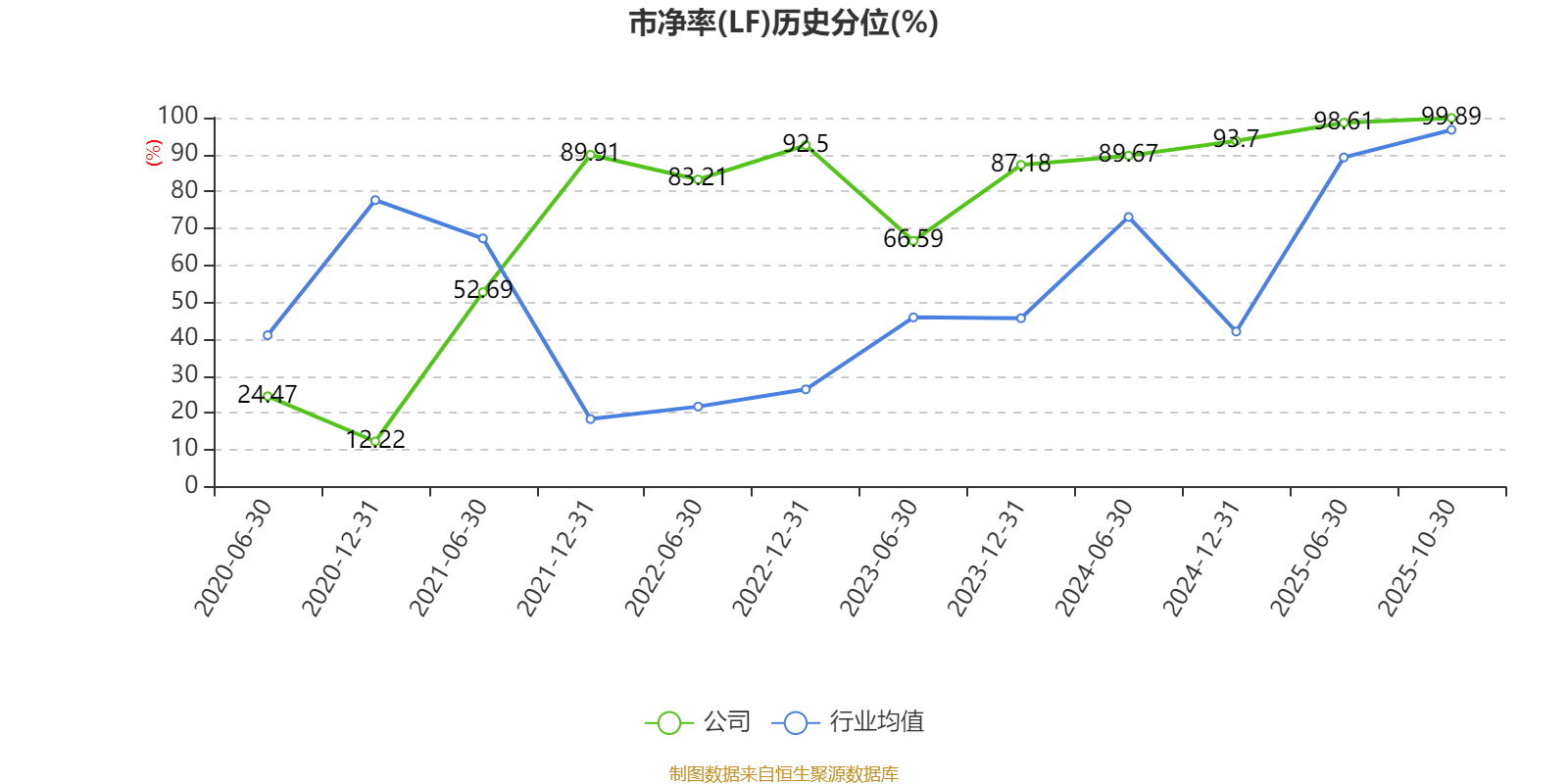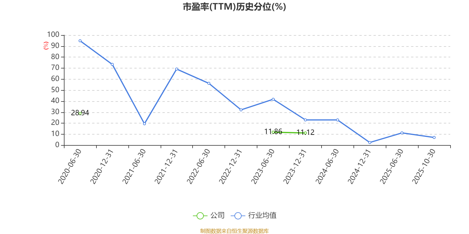 市盈率、市净率为负时,不显示当期分位数,会导致折线图中断。