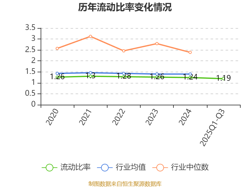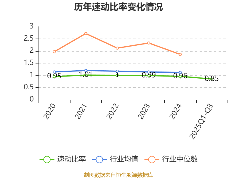 2025年前三季度,公司流动比率为1.19,速动比率为0.85。
