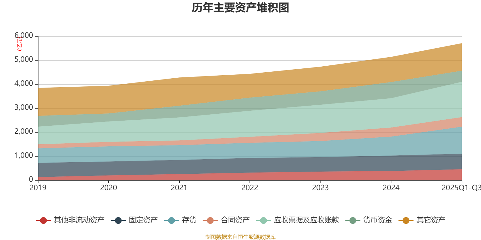 资产重大变化方面,截至2025年三季度末,公司货币资金较上年末减少31.51%,占公司总资产比重下降5.05个百分点;存货较上年末增加42.36%,占公司总资产比重上升4.33个百分点;应收票据及应收账款较上年末增加20.4%,占公司总资产比重上升1.99个百分点;固定资产较上年末增加0.69%,占公司总资产比重下降1.18个百分点。