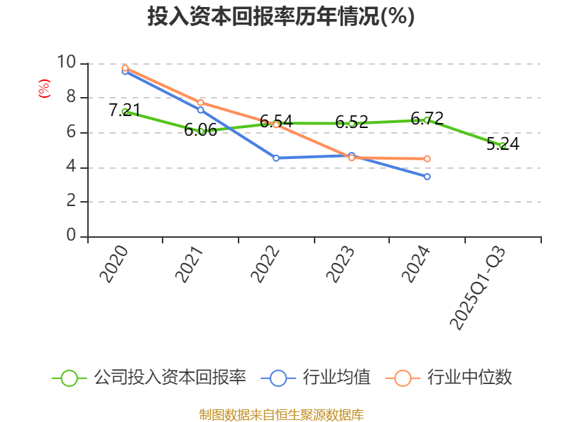 盈利能力方面, 2025年前三季度公司加权平均净资产收益率为5.8%,同比上升1.36个百分点。公司2025年前三季度投入资本回报率为5.24%,较上年同期上升1.01个百分点。