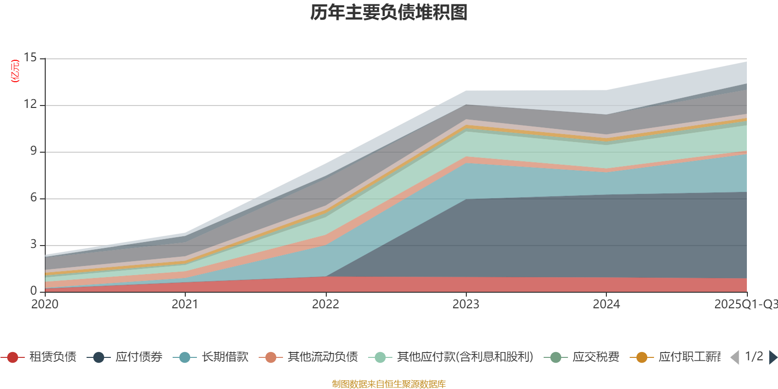 负债重大变化方面,截至2025年三季度末,公司长期借款较上年末增加70.36%,占公司总资产比重上升2.55个百分点;短期借款占公司总资产的1.13%,上年末为0;应付票据及应付账款较上年末增加21.99%,占公司总资产比重上升0.54个百分点;应付债券较上年末增加4.42%,占公司总资产比重下降0.4个百分点。