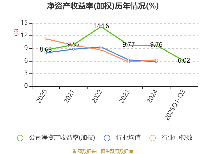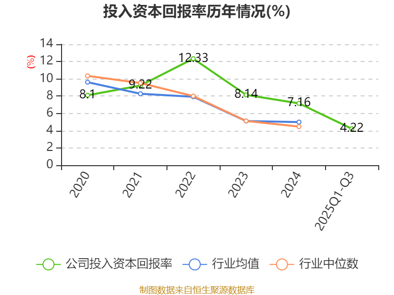 盈利能力方面, 2025年前三季度公司加权平均净资产收益率为6.02%,同比下降0.89个百分点。公司2025年前三季度投入资本回报率为4.22%,较上年同期下降1.02个百分点。