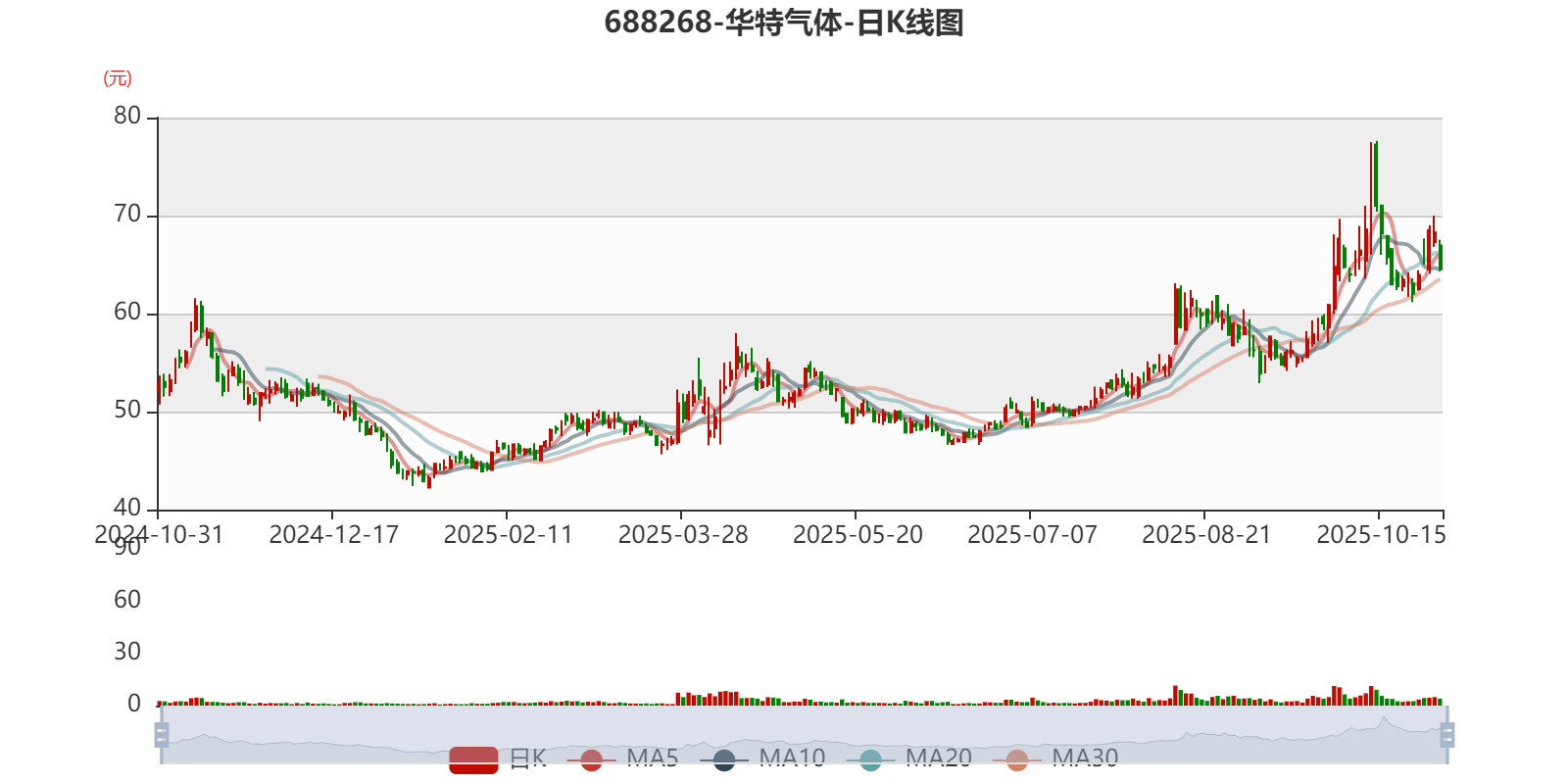 以10月30日收盘价计算,华特气体目前市盈率(TTM)约为45.36倍,市净率(LF)约3.88倍,市销率(TTM)约5.62倍。