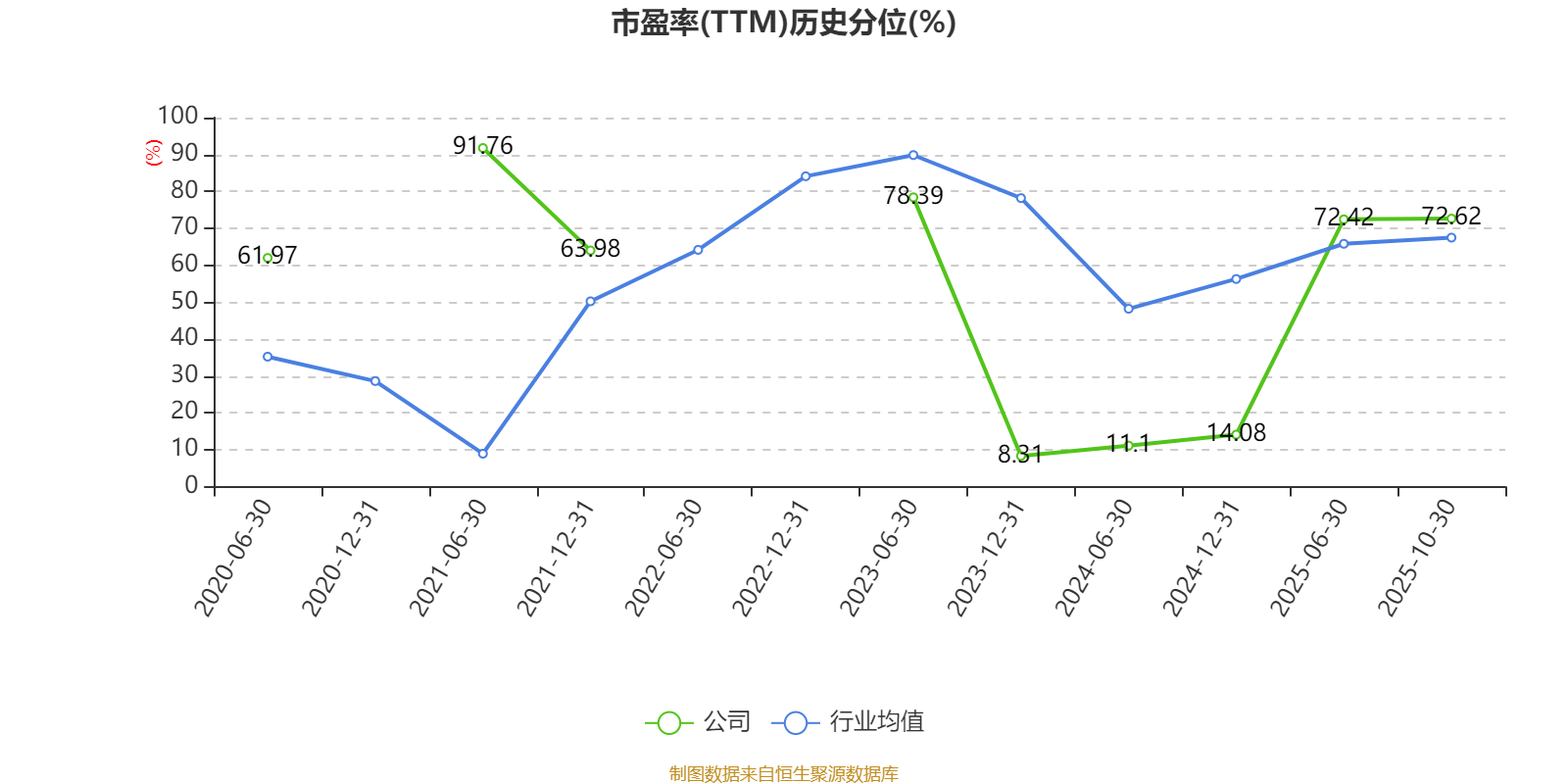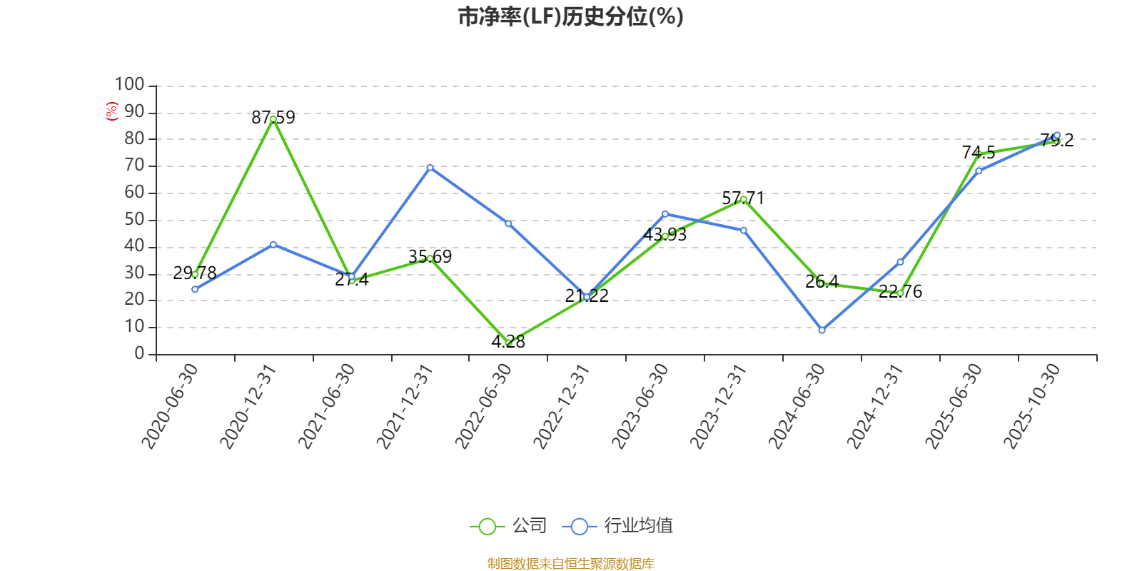 市盈率、市净率为负时,不显示当期分位数,会导致折线图中断。