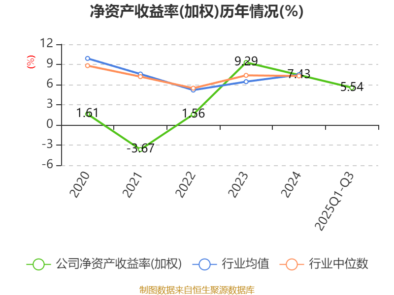盈利能力方面, 2025年前三季度公司加权平均净资产收益率为5.54%,同比下降1.15个百分点。公司2025年前三季度投入资本回报率为4.33%,较上年同期下降0.73个百分点。