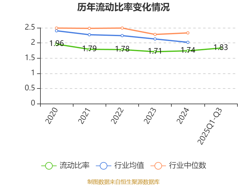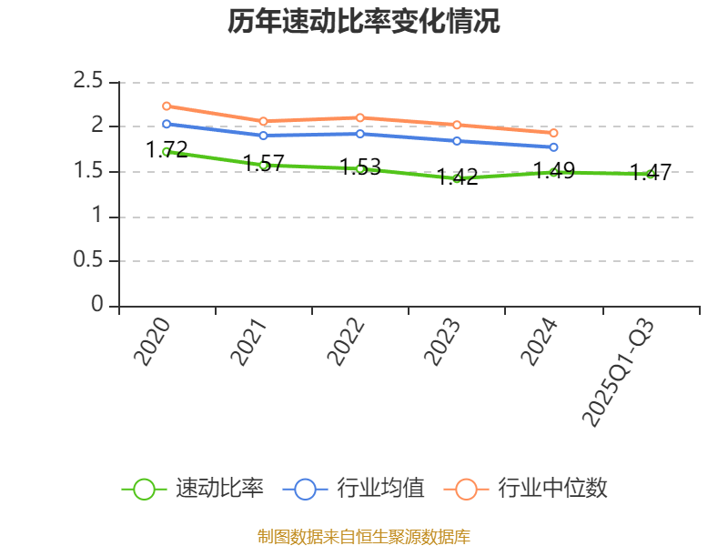 2025年前三季度,公司流动比率为1.83,速动比率为1.47。