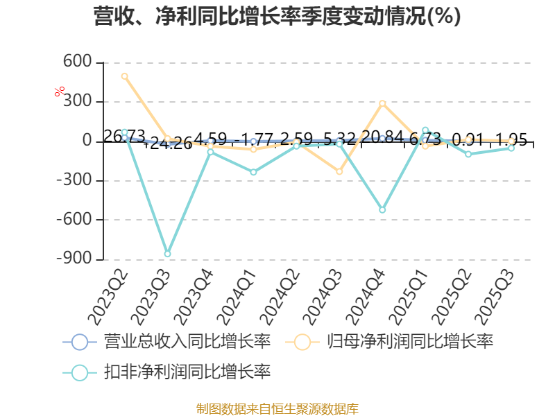资产重大变化方面,截至2025年三季度末,公司存货较上年末增加43.52%,占公司总资产比重上升3.72个百分点;其他非流动金融资产较上年末减少40.59%,占公司总资产比重下降2.51个百分点;交易性金融资产合计较上年末增加14.3%,占公司总资产比重上升1.71个百分点;货币资金较上年末减少4.55%,占公司总资产比重下降1.65个百分点。