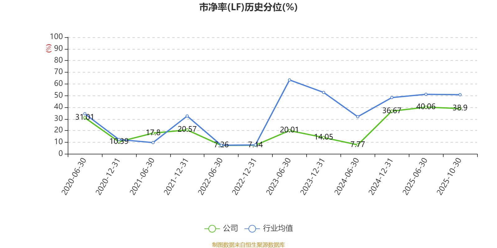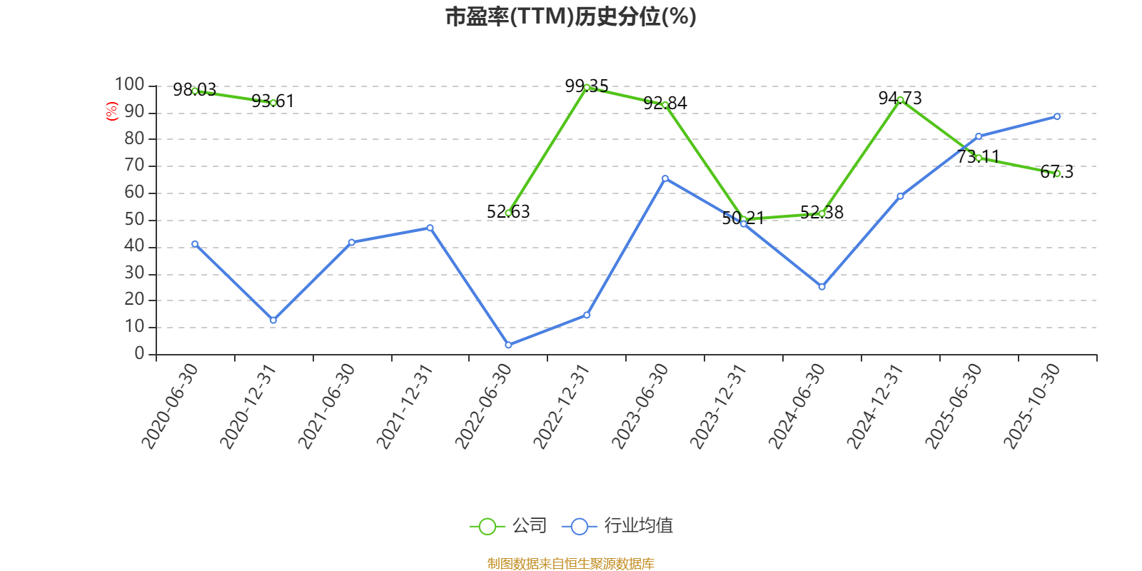 市盈率、市净率为负时,不显示当期分位数,会导致折线图中断。