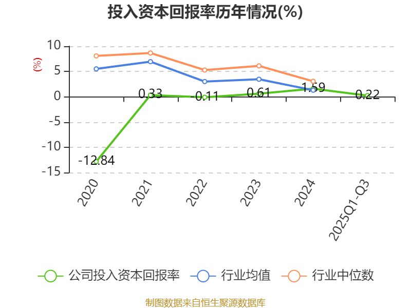 盈利能力方面, 2025年前三季度公司加权平均净资产收益率为0.51%,同比上升0.11个百分点。公司2025年前三季度投入资本回报率为0.22%,较上年同期下降0.16个百分点。