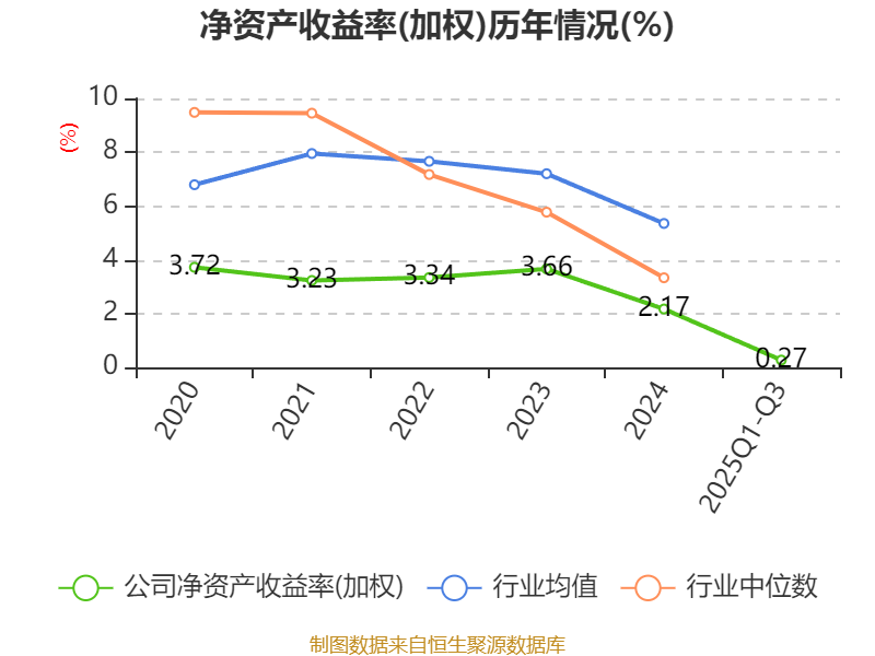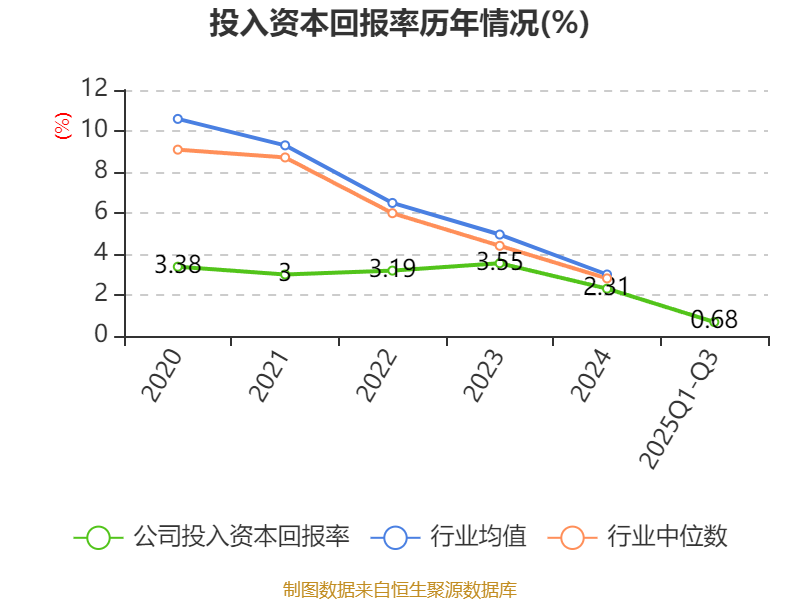 盈利能力方面, 2025年前三季度公司加权平均净资产收益率为0.27%,同比下降1.55个百分点。公司2025年前三季度投入资本回报率为0.68%,较上年同期下降1.06个百分点。