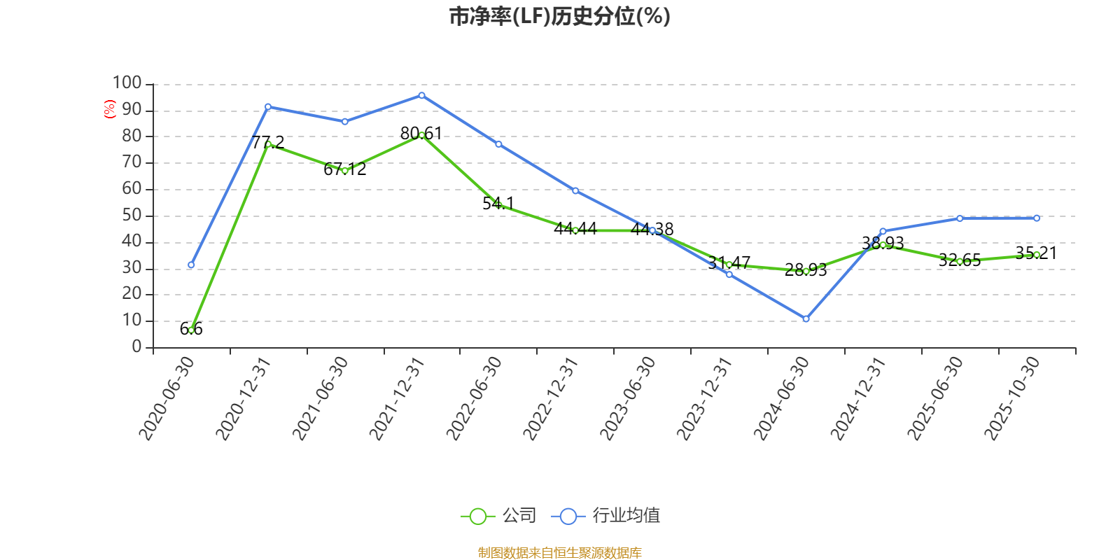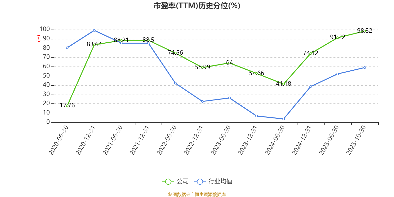 市盈率、市净率为负时,不显示当期分位数,会导致折线图中断。