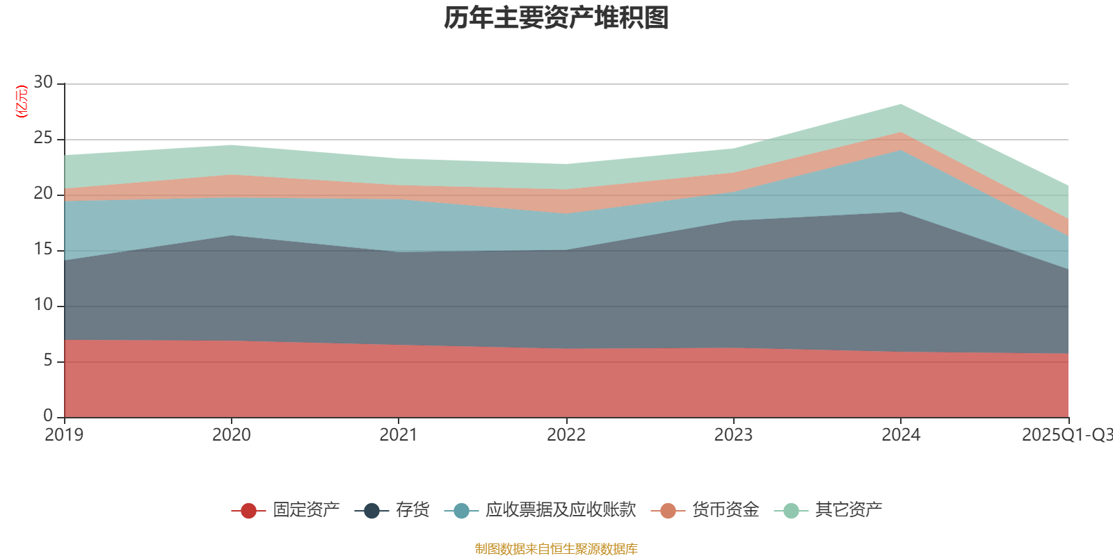 资产重大变化方面,截至2025年三季度末,公司存货较上年末减少39.65%,占公司总资产比重下降8.2个百分点;固定资产较上年末减少2.84%,占公司总资产比重上升6.56个百分点;应收票据及应收账款较上年末减少46.4%,占公司总资产比重下降5.43个百分点;预付款项较上年末增加959.32%,占公司总资产比重上升3.83个百分点。