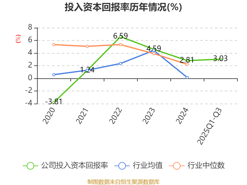 盈利能力方面, 2025年前三季度公司加权平均净资产收益率为3.09%,同比上升2.99个百分点。公司2025年前三季度投入资本回报率为3.03%,较上年同期上升1.69个百分点。