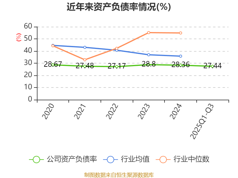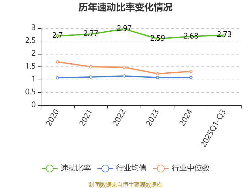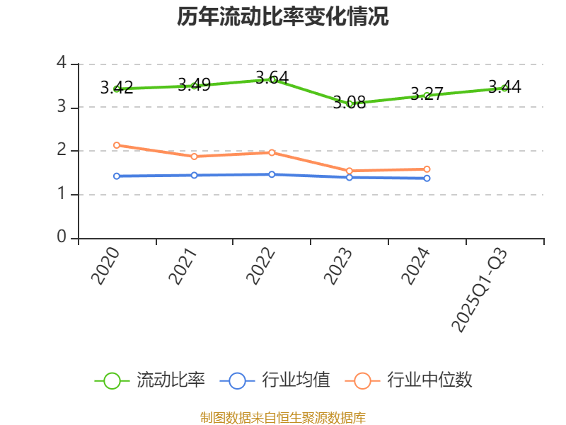 2025年前三季度,公司流动比率为3.44,速动比率为2.73。