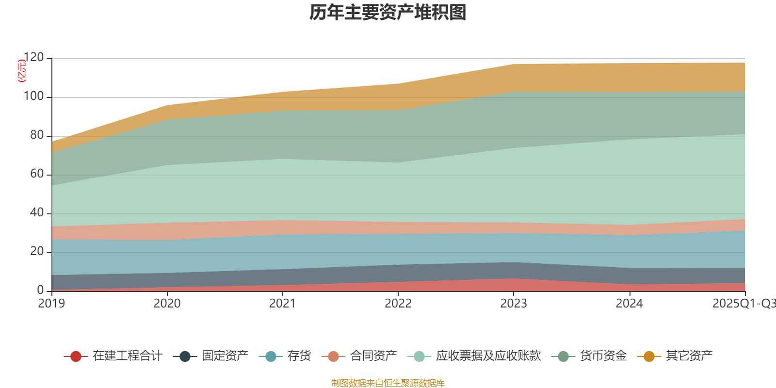 资产重大变化方面,截至2025年三季度末,公司存货较上年末增加14.89%,占公司总资产比重上升2.11个百分点;货币资金较上年末减少9.79%,占公司总资产比重下降2.07个百分点;固定资产较上年末减少7.17%,占公司总资产比重下降0.53个百分点;在建工程合计较上年末增加15.78%,占公司总资产比重上升0.46个百分点。