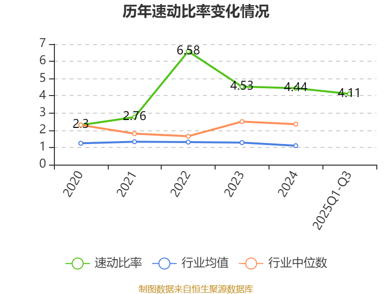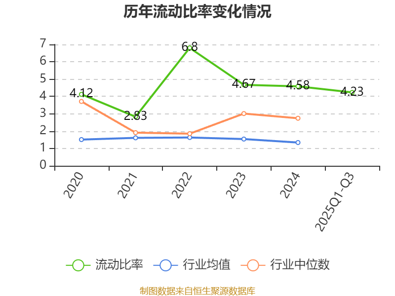 2025年前三季度,公司流动比率为4.23,速动比率为4.11。