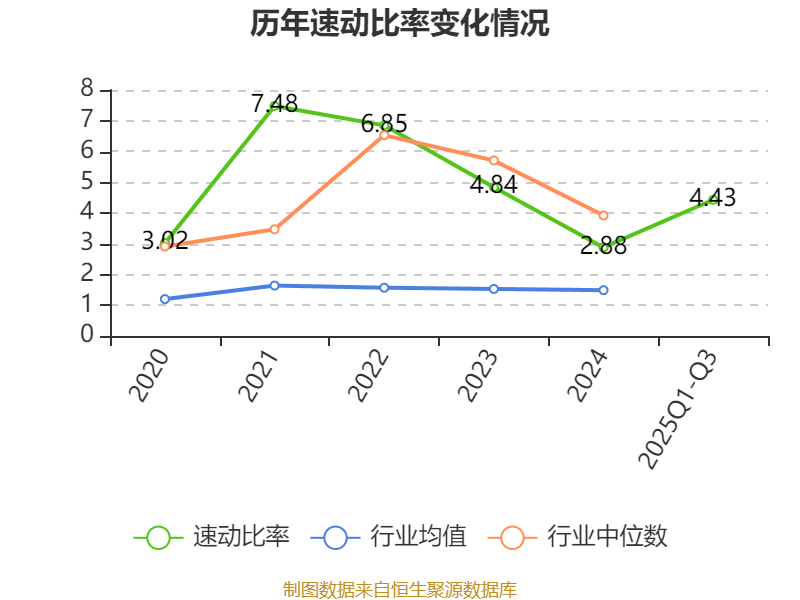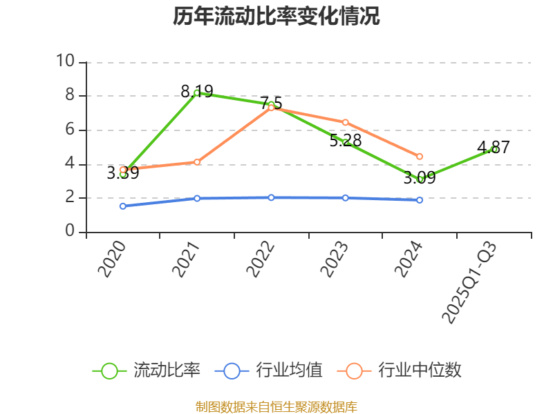 2025年前三季度,公司流动比率为4.87,速动比率为4.43。
