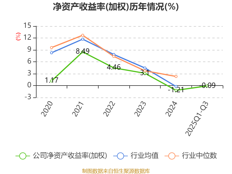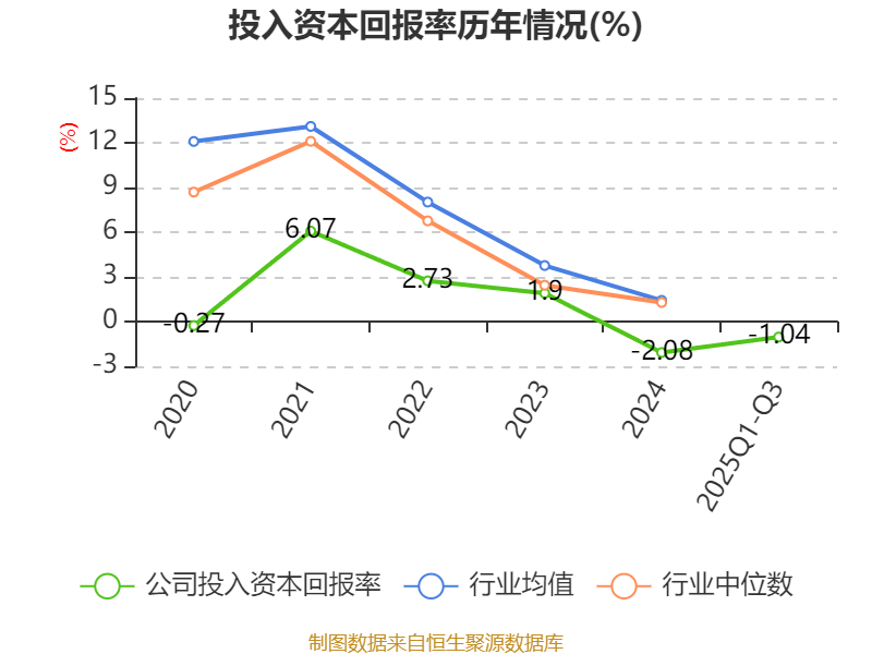 盈利能力方面, 2025年前三季度公司加权平均净资产收益率为-0.09%,同比上升0.74个百分点。公司2025年前三季度投入资本回报率为-1.04%,较上年同期上升0.59个百分点。