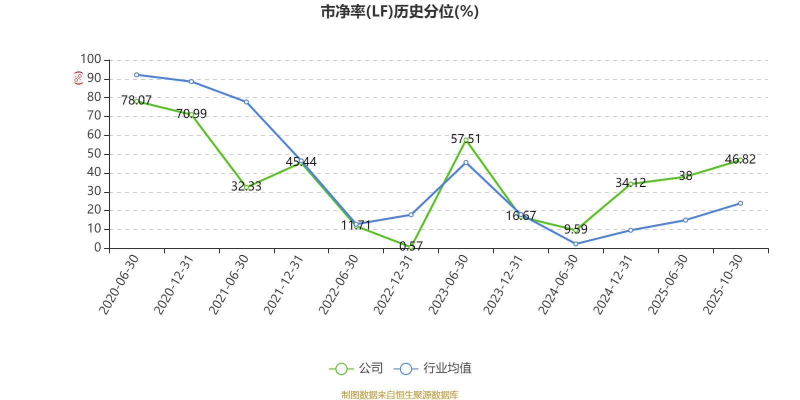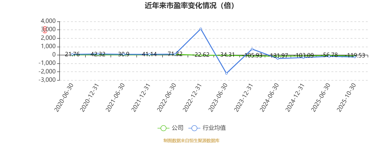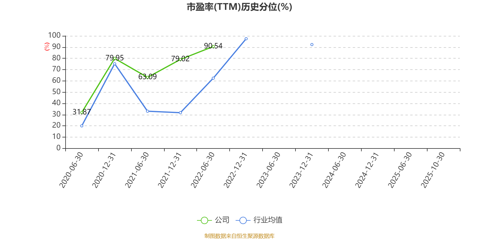 市盈率、市净率为负时,不显示当期分位数,会导致折线图中断。