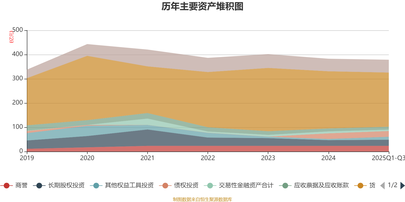 资产重大变化方面,截至2025年三季度末,公司货币资金较上年末减少5.17%,占公司总资产比重下降2.54个百分点;其他权益工具投资较上年末增加140.07%,占公司总资产比重上升1.89个百分点;长期股权投资较上年末增加8.32%,占公司总资产比重上升0.58个百分点;交易性金融资产合计较上年末减少27.2%,占公司总资产比重下降0.55个百分点。
