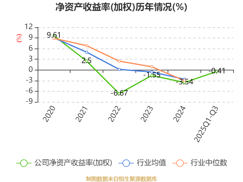 盈利能力方面, 2025年前三季度公司加权平均净资产收益率为-0.41%,同比上升1.45个百分点。公司2025年前三季度投入资本回报率为-1.58%,较上年同期上升1.62个百分点。