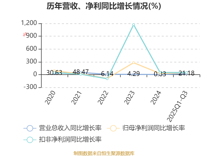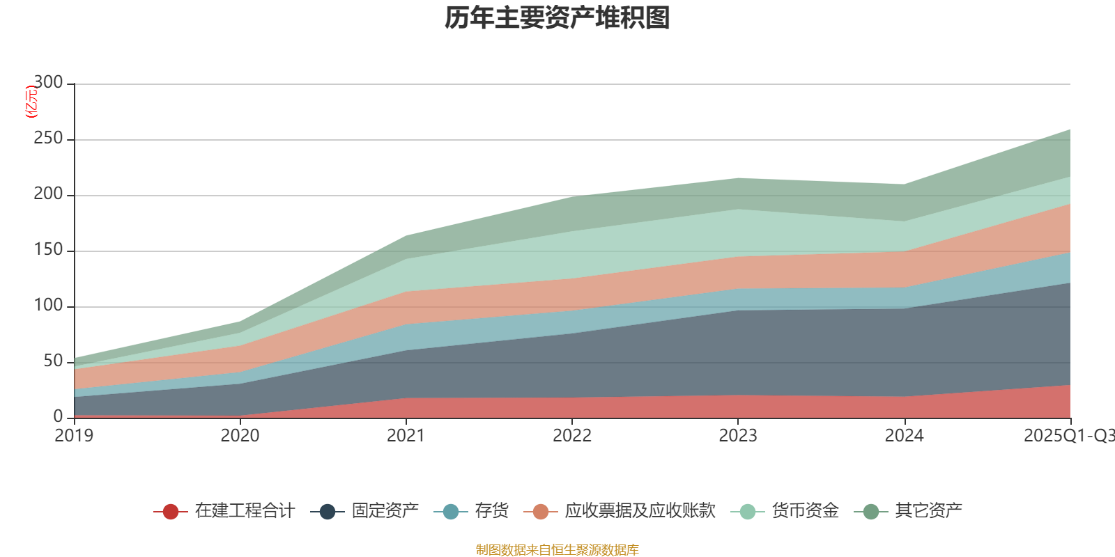 资产重大变化方面,截至2025年三季度末,公司货币资金较上年末减少9.98%,占公司总资产比重下降3.51个百分点;交易性金融资产合计较上年末增加549.23%,占公司总资产比重上升3.06个百分点;在建工程合计较上年末增加56.22%,占公司总资产比重上升2.38个百分点;固定资产较上年末增加15.77%,占公司总资产比重下降2.37个百分点。