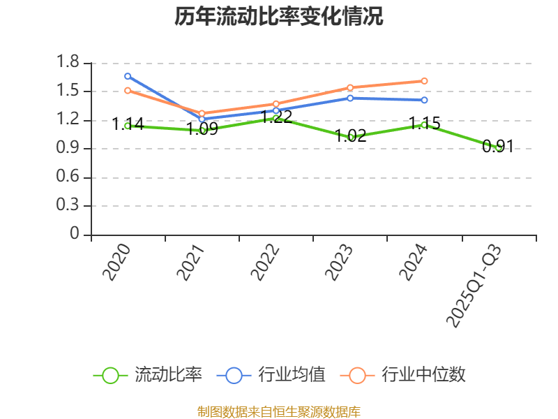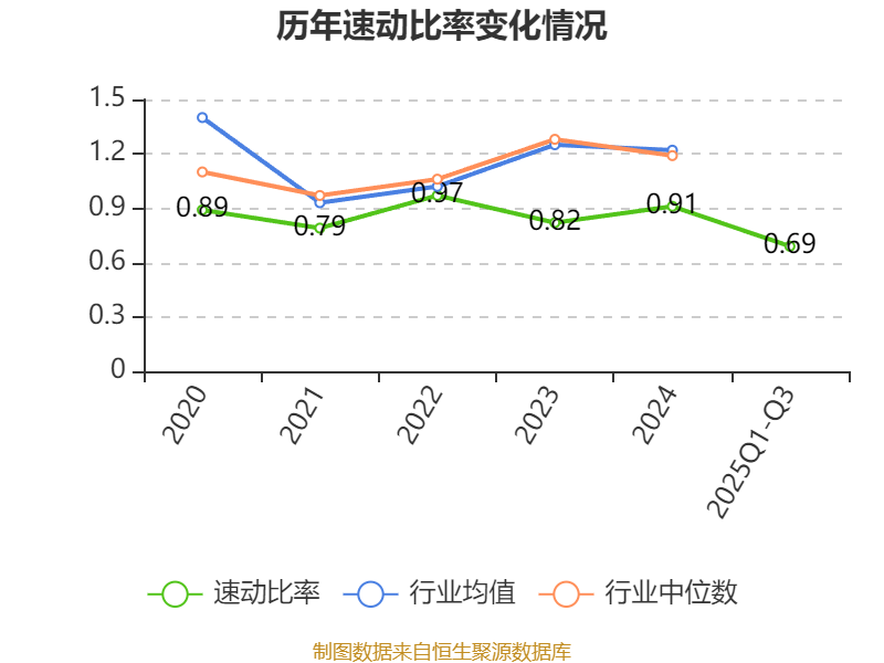 2025年前三季度,公司流动比率为0.91,速动比率为0.69。