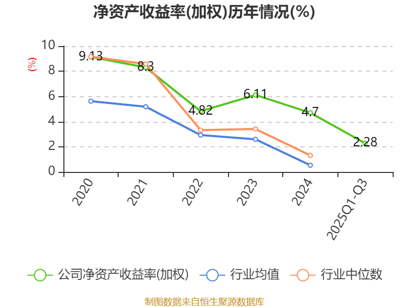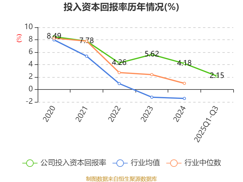 盈利能力方面, 2025年前三季度公司加权平均净资产收益率为2.28%,同比下降0.02个百分点。公司2025年前三季度投入资本回报率为2.15%,较上年同期上升0.05个百分点。