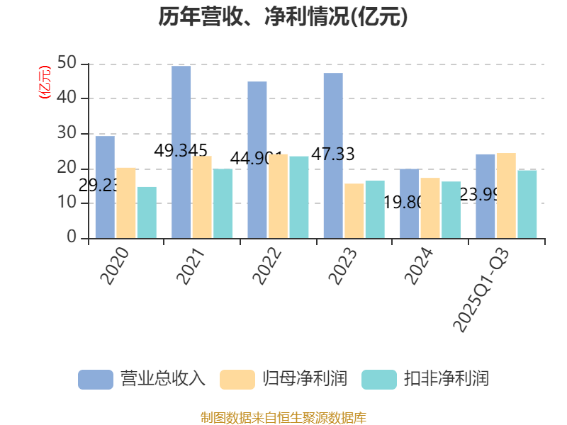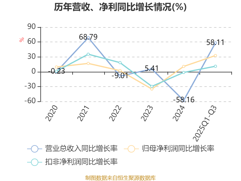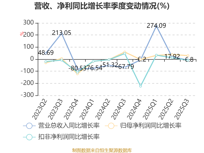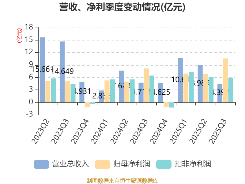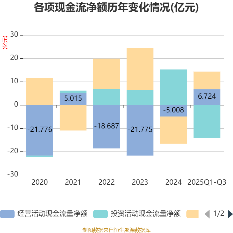 2025年前三季度,公司经营活动现金流净额为6.72亿元,同比增加13.09亿元;筹资活动现金流净额7.56亿元,同比增加10.28亿元;投资活动现金流净额-14.18亿元,上年同期为9.65亿元。