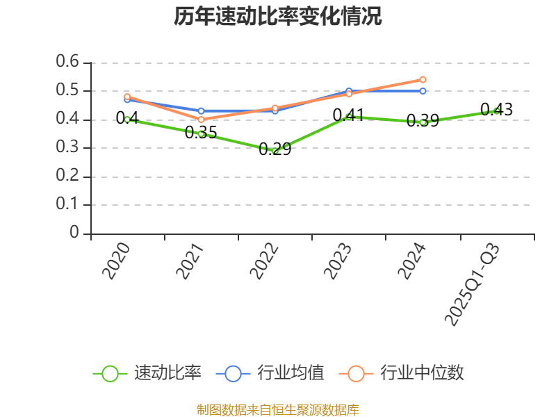 2025年前三季度,公司流动比率为1.18,速动比率为0.43。