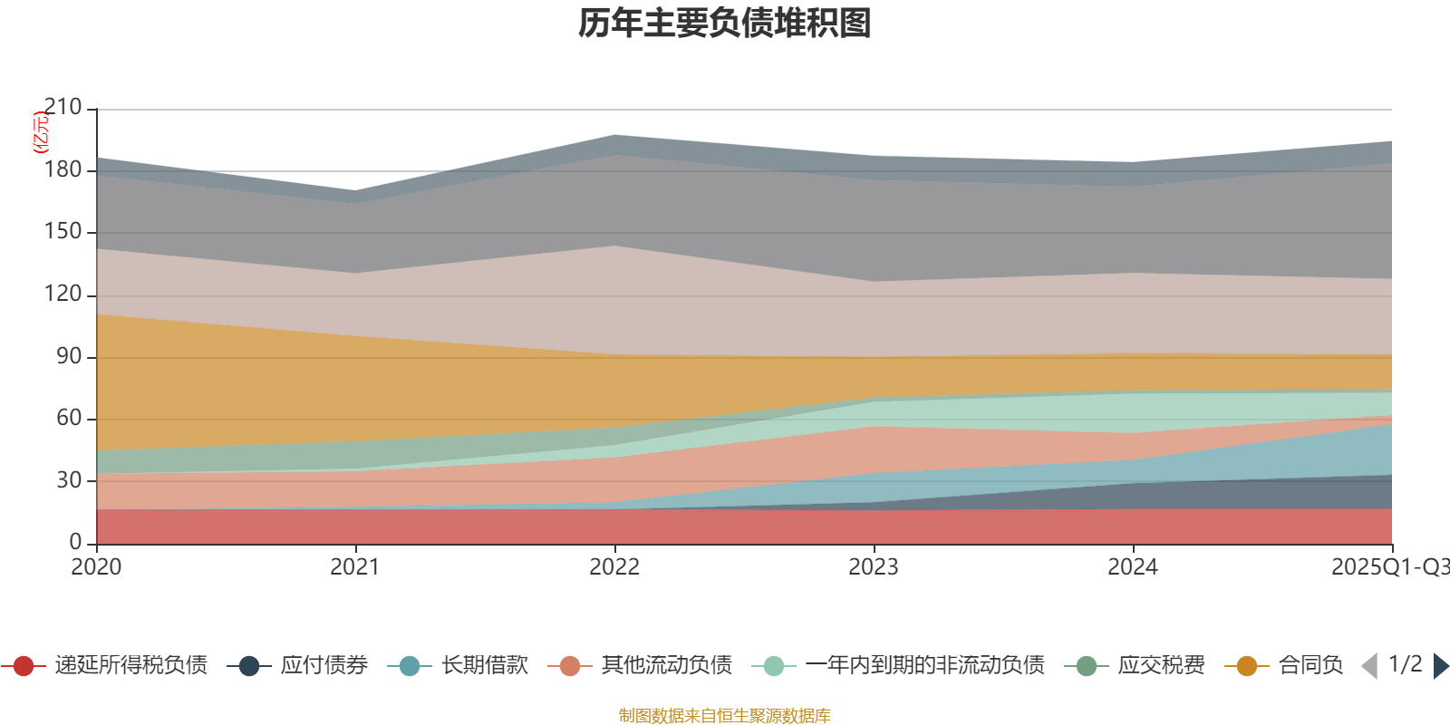 资产重大变化方面,截至2025年三季度末,公司长期股权投资较上年末增加14.1%,占公司总资产比重上升4.1个百分点;存货较上年末减少8.47%,占公司总资产比重下降3.73个百分点;合同资产较上年末减少22.88%,占公司总资产比重下降1.22个百分点;应收票据及应收账款较上年末增加41.96%,占公司总资产比重上升0.65个百分点。