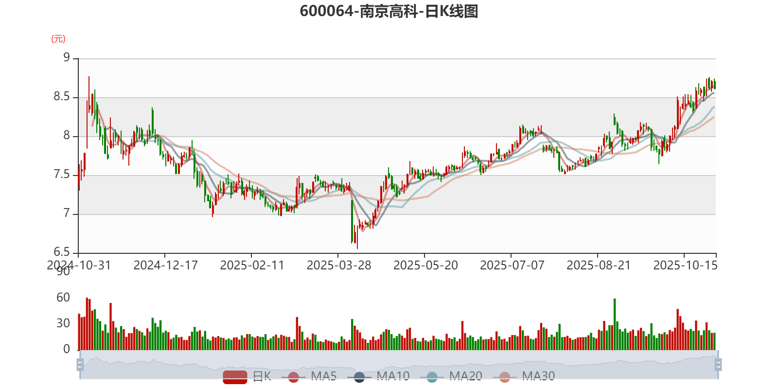 以10月30日收盘价计算,南京高科目前市盈率(TTM)约为6.41倍,市净率(LF)约0.76倍,市销率(TTM)约5.22倍。
