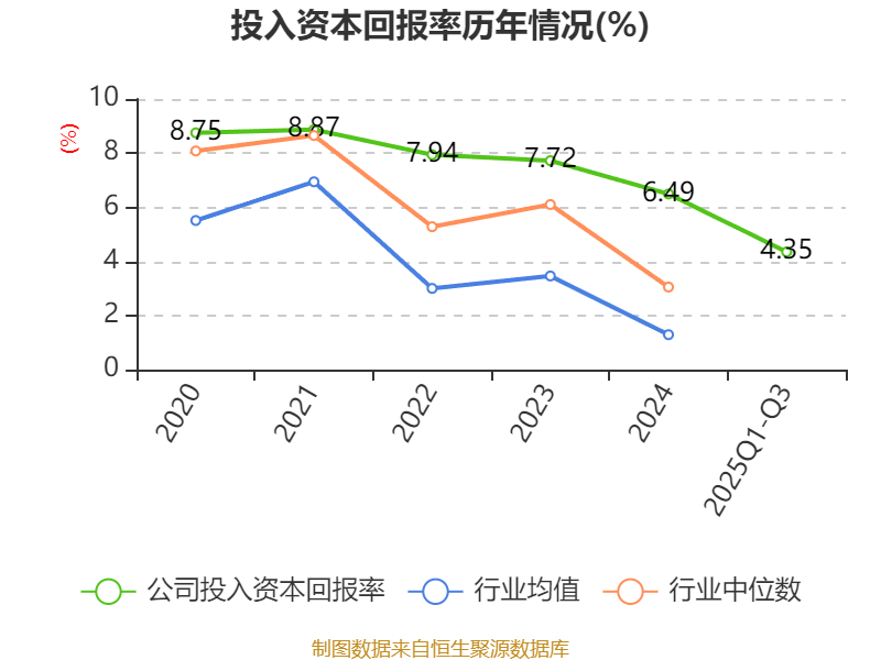 盈利能力方面, 2025年前三季度公司加权平均净资产收益率为5.66%,同比上升1.48个百分点。公司2025年前三季度投入资本回报率为4.35%,较上年同期上升1.22个百分点。