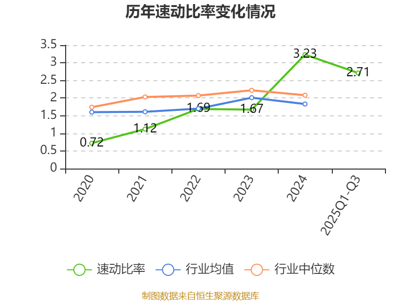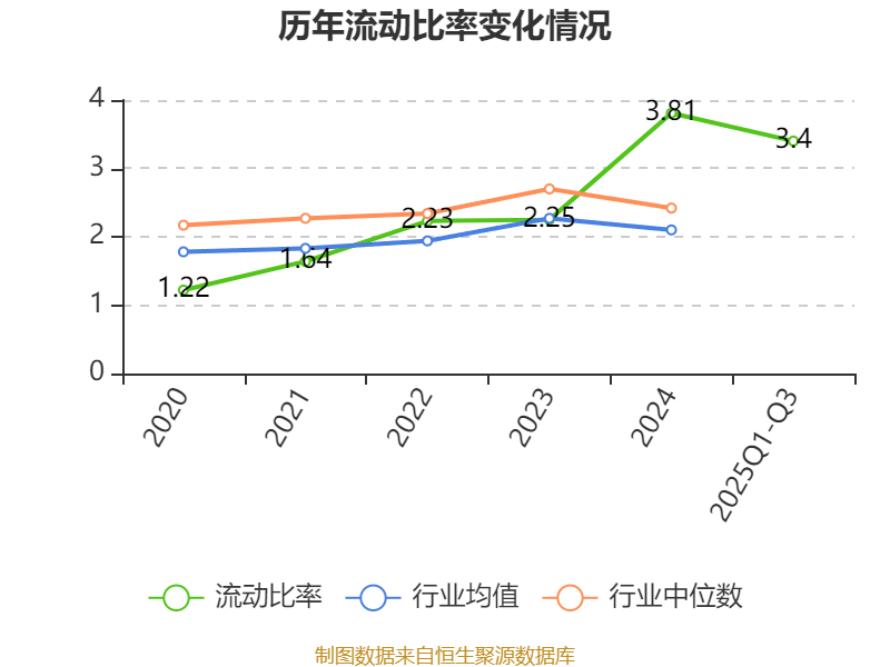 2025年前三季度,公司流动比率为3.4,速动比率为2.71。