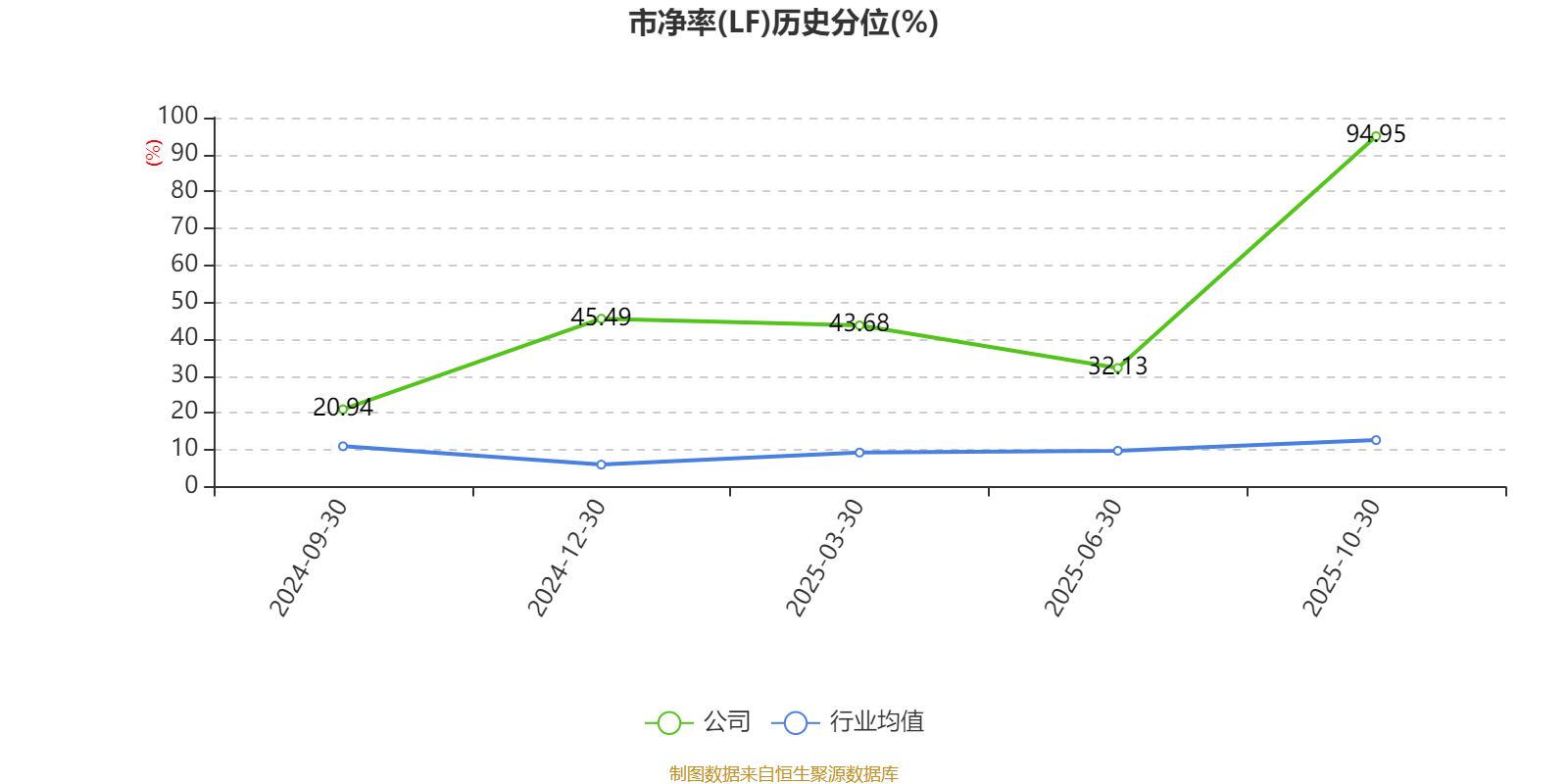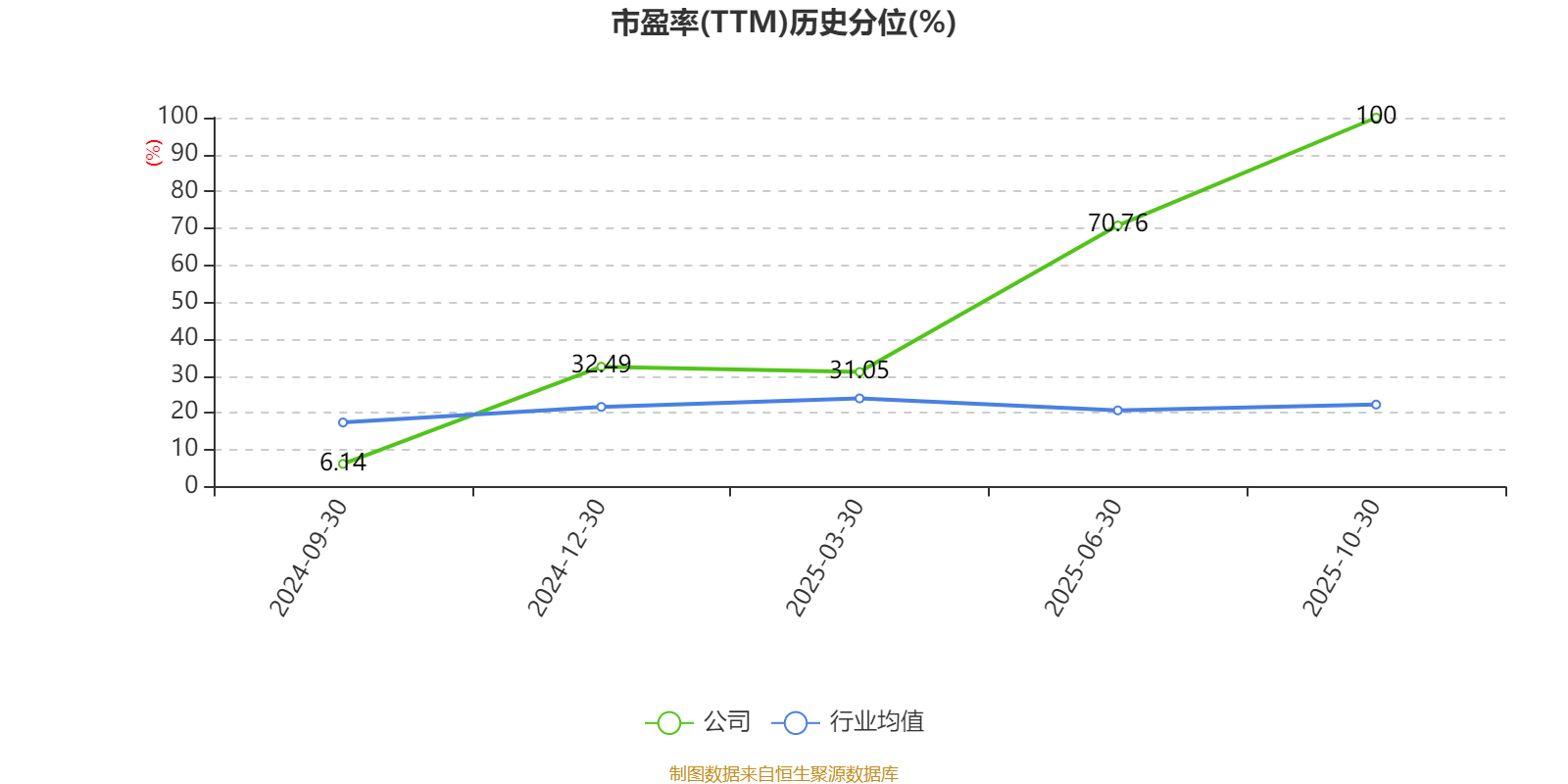 市盈率、市净率为负时,不显示当期分位数,会导致折线图中断。
