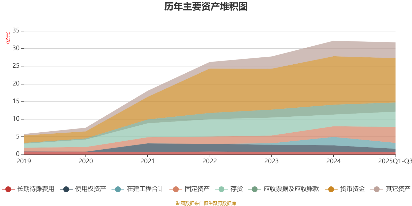资产重大变化方面,截至2025年三季度末,公司固定资产较上年末增加49.58%,占公司总资产比重上升4.87个百分点;存货较上年末增加29.9%,占公司总资产比重上升3.28个百分点;货币资金较上年末减少8.41%,占公司总资产比重下降3.02个百分点;使用权资产较上年末减少47.78%,占公司总资产比重下降2.71个百分点。