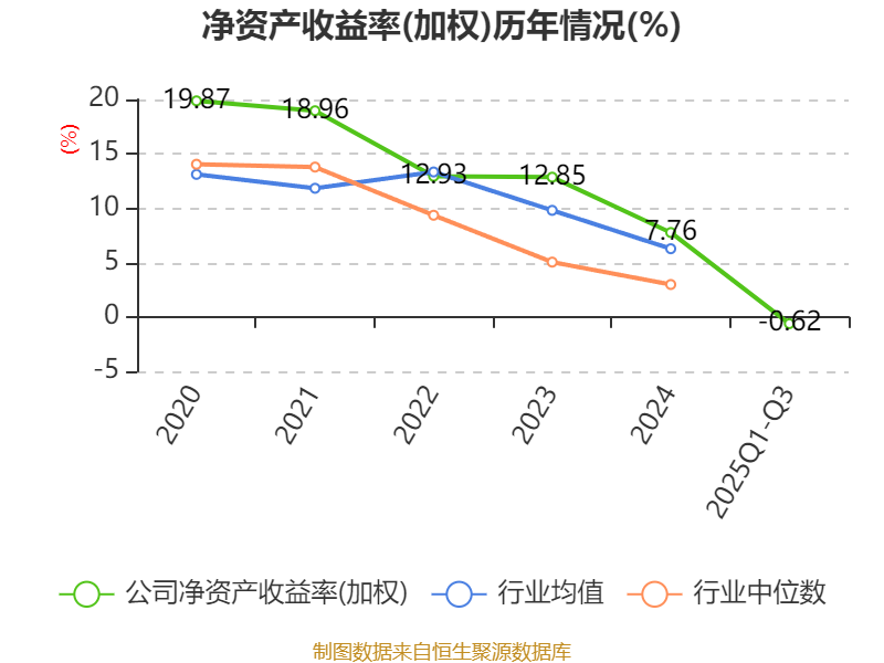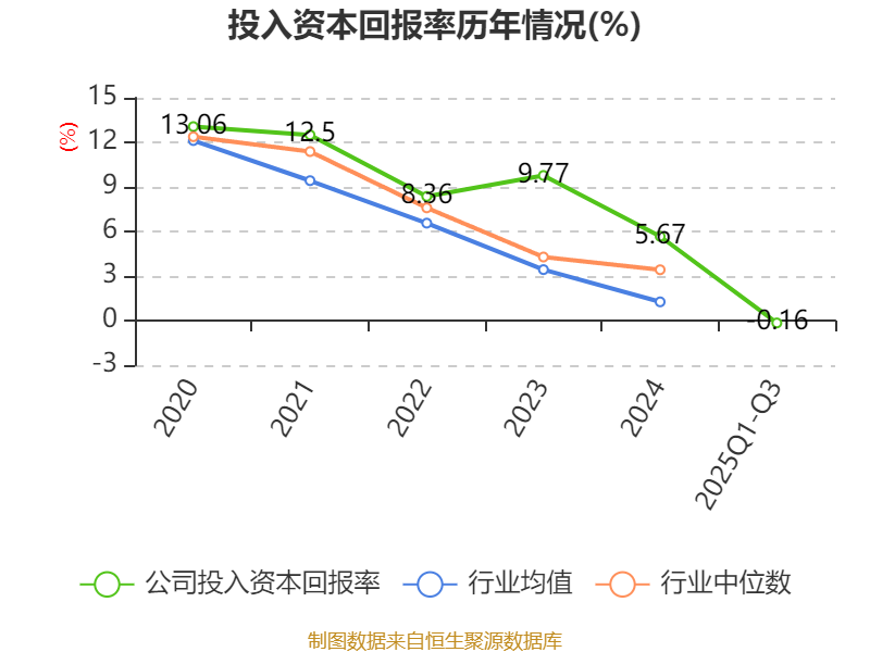盈利能力方面, 2025年前三季度公司加权平均净资产收益率为-0.62%,同比下降8.17个百分点。公司2025年前三季度投入资本回报率为-0.16%,较上年同期下降5.39个百分点。