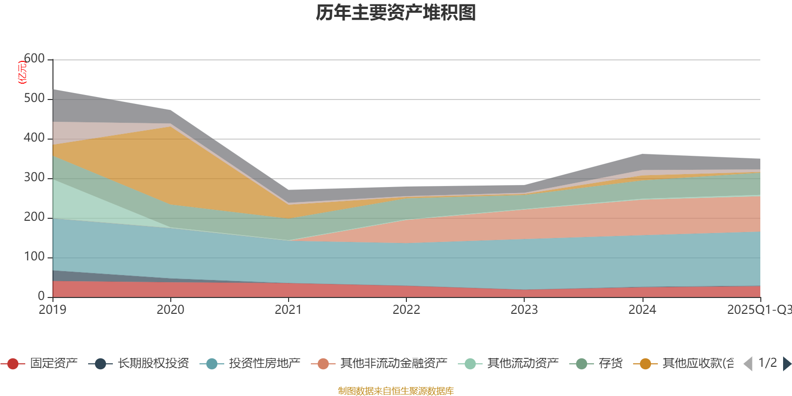 资产重大变化方面,截至2025年三季度末,公司存货较上年末增加20.86%,占公司总资产比重上升3.21个百分点;投资性房地产较上年末增加4.74%,占公司总资产比重上升3.02个百分点;其他应收款(含利息和股利)较上年末减少84.2%,占公司总资产比重下降2.95个百分点;其他非流动资产较上年末减少57.76%,占公司总资产比重下降2.65个百分点。