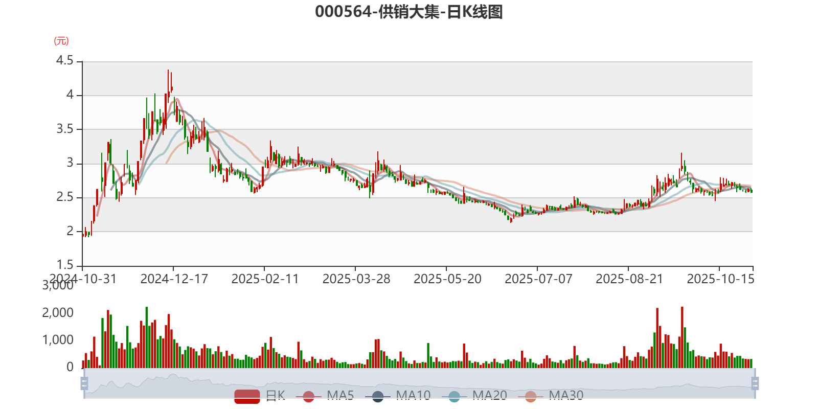 中证智能财讯供销大集(000564)10月31日披露2025年第三季度报告。前三季度公司实现营业总收入12.09亿元,同比下降15.39%;归母净利润7235.53万元,同比下降37.74%;扣非净利润亏损1.41亿元,上年同期亏损3.03亿元;经营活动产生的现金流量净额为-8.24亿元,上年同期为-4.54亿元;报告期内,供销大集基本每股收益为0.004元,加权平均净资产收益率为0.46%。