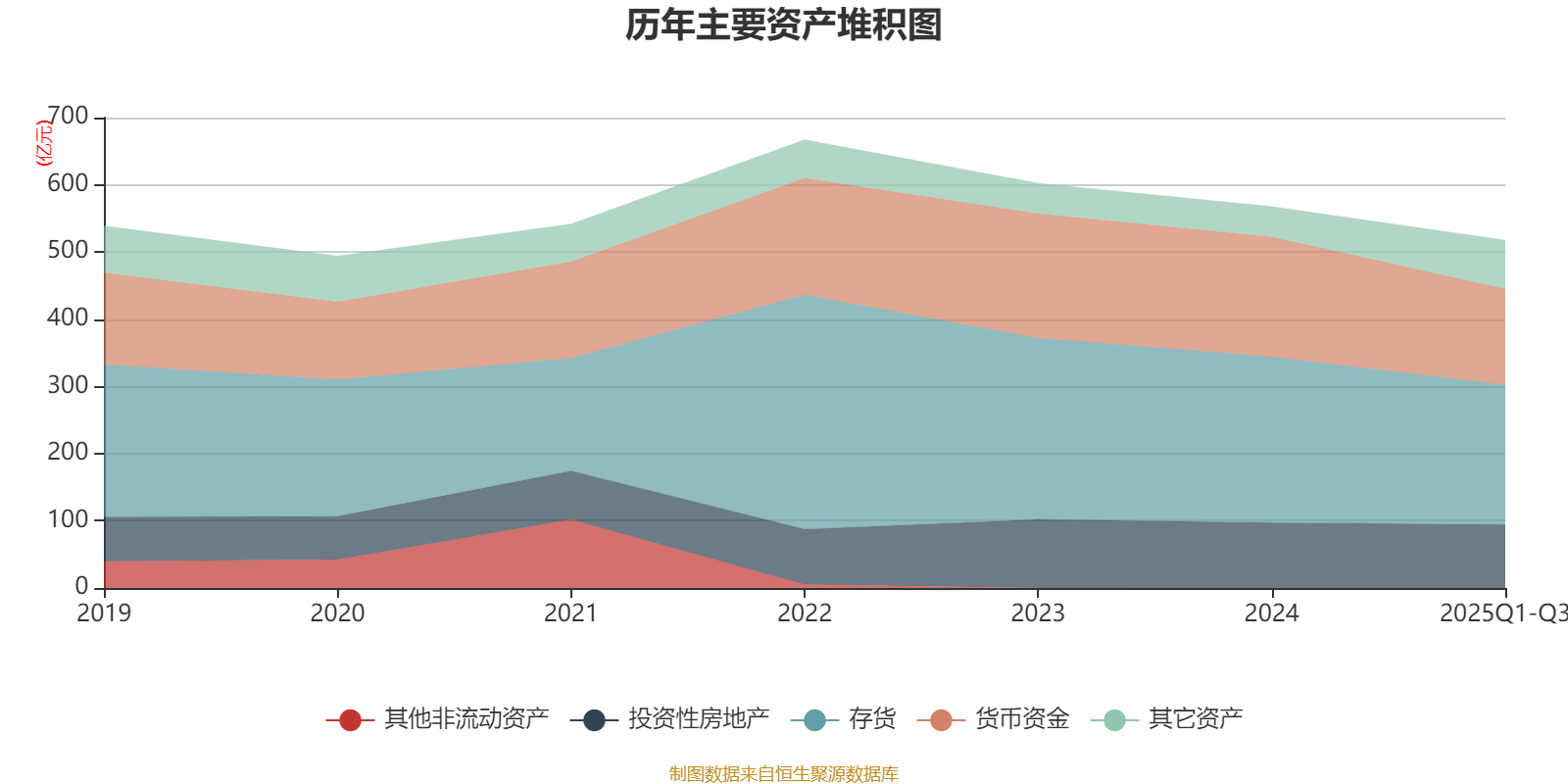 资产重大变化方面,截至2025年三季度末,公司其他应收款(含利息和股利)较上年末增加1039.54%,占公司总资产比重上升4.1个百分点;货币资金较上年末减少19.91%,占公司总资产比重下降3.83个百分点;存货较上年末减少15.76%,占公司总资产比重下降3.32个百分点;投资性房地产较上年末减少2.96%,占公司总资产比重上升1.1个百分点。