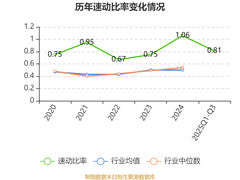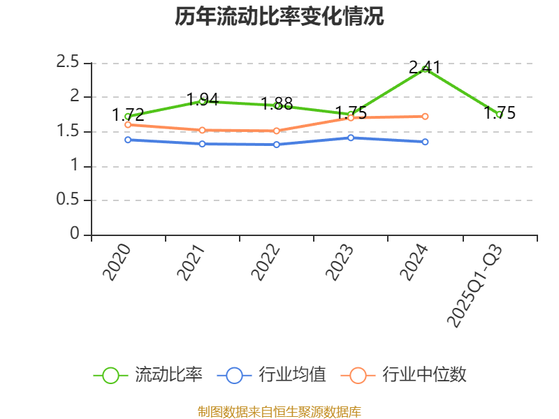 2025年前三季度,公司流动比率为1.75,速动比率为0.81。