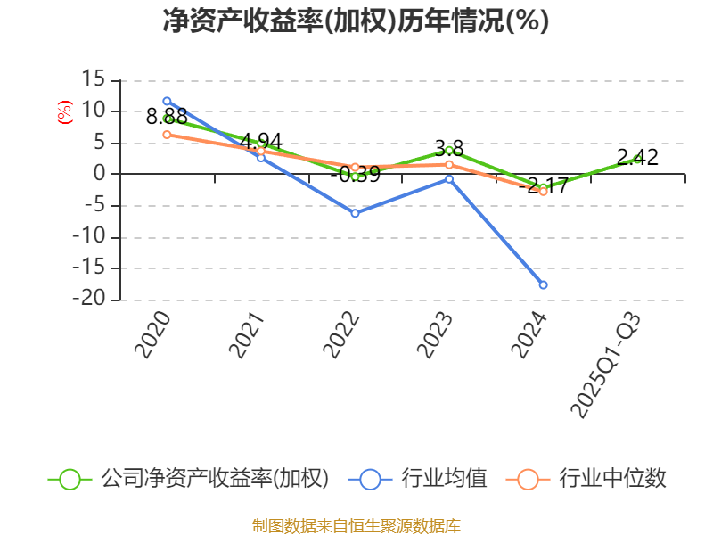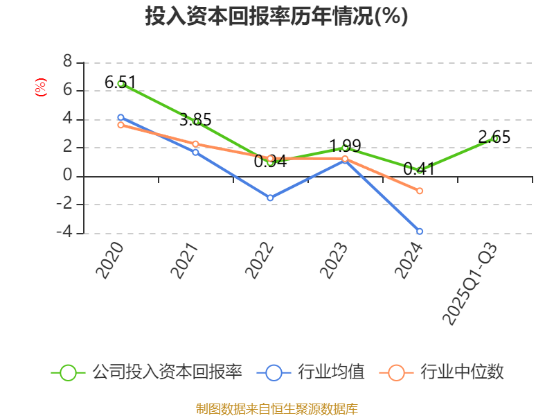 盈利能力方面, 2025年前三季度公司加权平均净资产收益率为2.42%,同比上升6.05个百分点。公司2025年前三季度投入资本回报率为2.65%,较上年同期上升2.58个百分点。