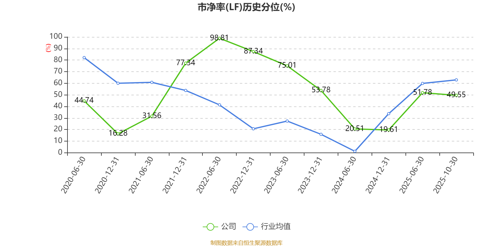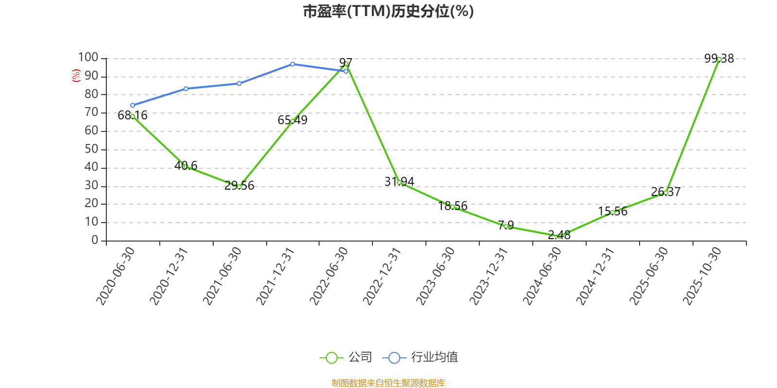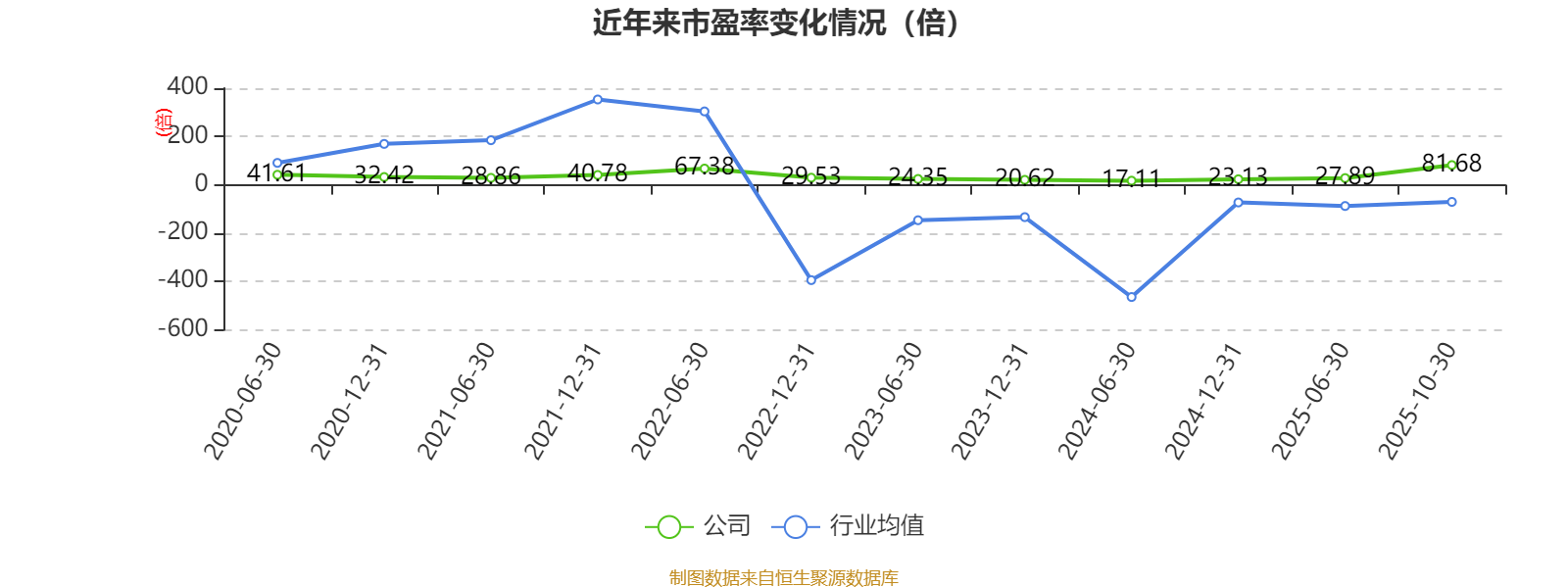 市盈率、市净率为负时,不显示当期分位数,会导致折线图中断。