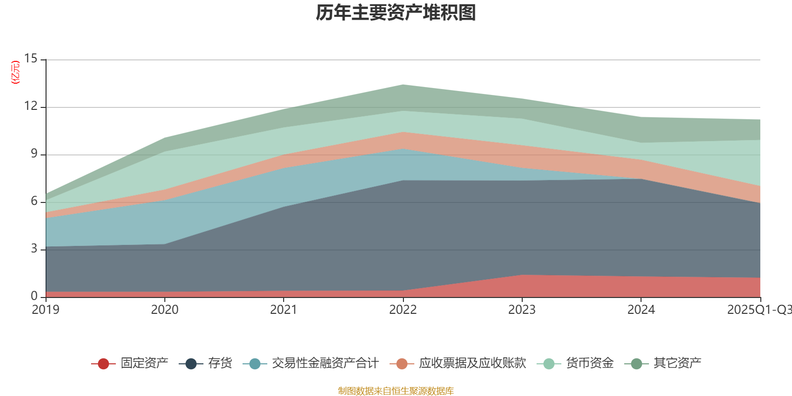 资产重大变化方面,截至2025年三季度末,公司货币资金较上年末增加171.11%,占公司总资产比重上升16.46个百分点;存货较上年末减少23.6%,占公司总资产比重下降12.22个百分点;应收款项融资较上年末减少68.9%,占公司总资产比重下降0.98个百分点;应收票据及应收账款较上年末减少10.19%,占公司总资产比重下降0.95个百分点。