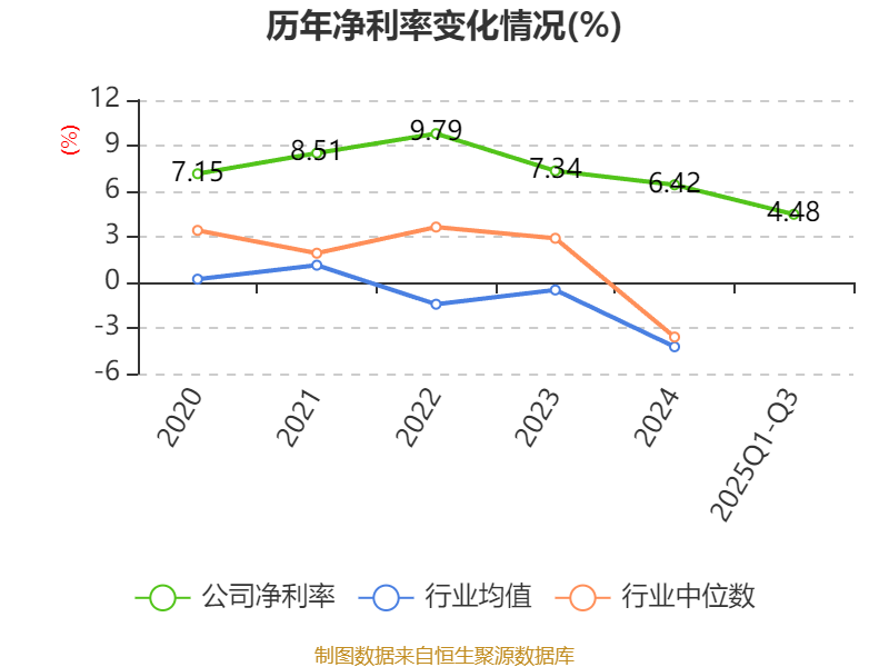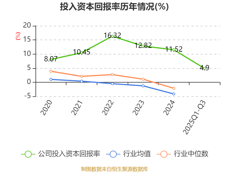 盈利能力方面, 2025年前三季度公司加权平均净资产收益率为6.61%,同比下降9.43个百分点。公司2025年前三季度投入资本回报率为4.9%,较上年同期下降7.98个百分点。