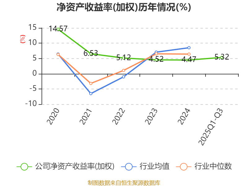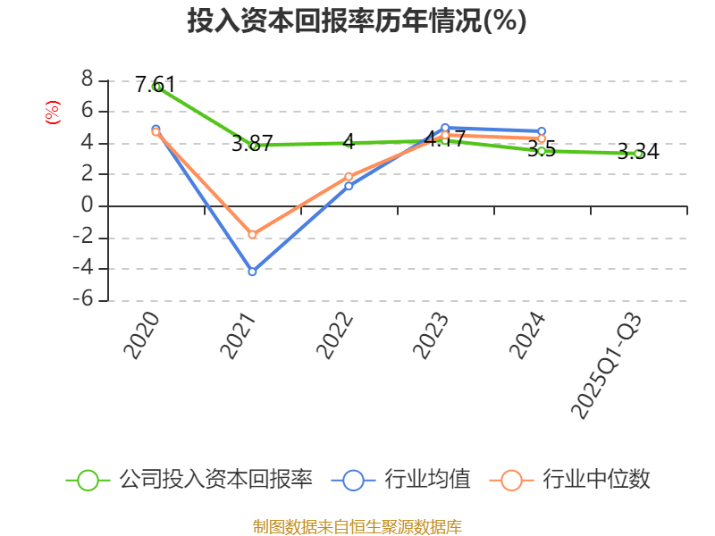 盈利能力方面, 2025年前三季度公司加权平均净资产收益率为5.32%,同比下降0.77个百分点。公司2025年前三季度投入资本回报率为3.34%,较上年同期下降0.09个百分点。